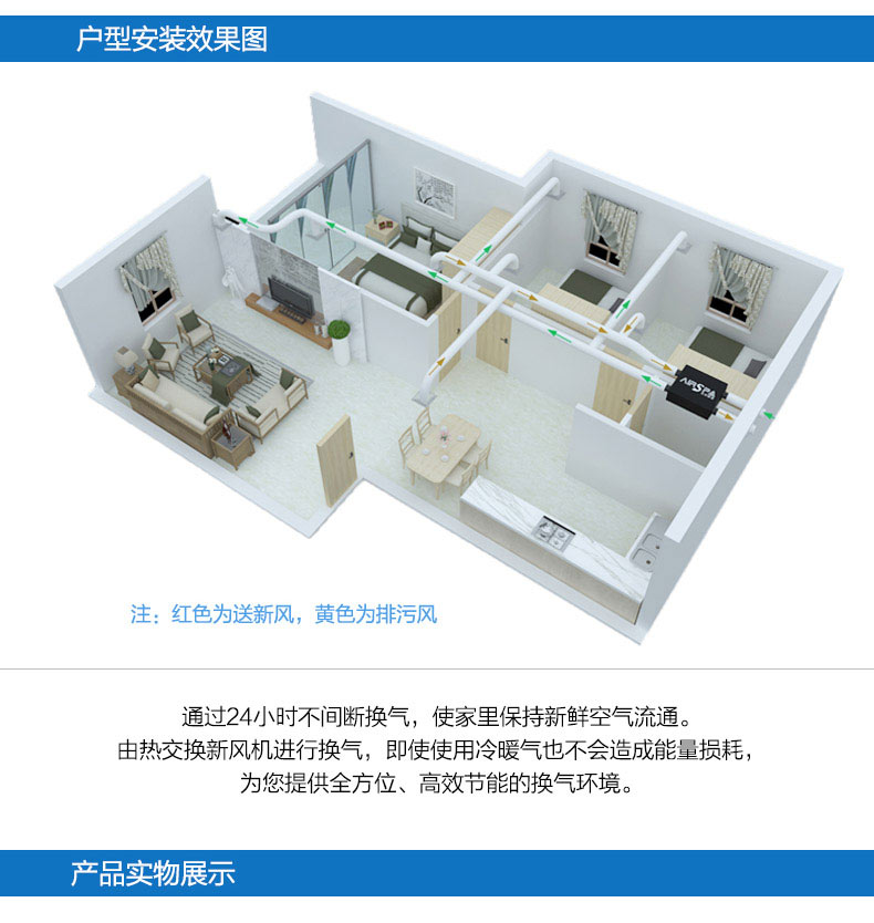 高能效比:采用水平進(jìn)排風(fēng),具非常高的能效比,可回收70%以上能量 高效過(guò)濾:采用歐洲標(biāo)準(zhǔn)H13級(jí)過(guò)濾,多重過(guò)濾;PM2.5過(guò)濾99%以上 雙向流新風(fēng)機(jī):訂機(jī)采用雙核動(dòng)力設(shè)計(jì),動(dòng)力強(qiáng),體積?。徊捎弥绷鳠o(wú)刷電機(jī),低噪音,低能耗
